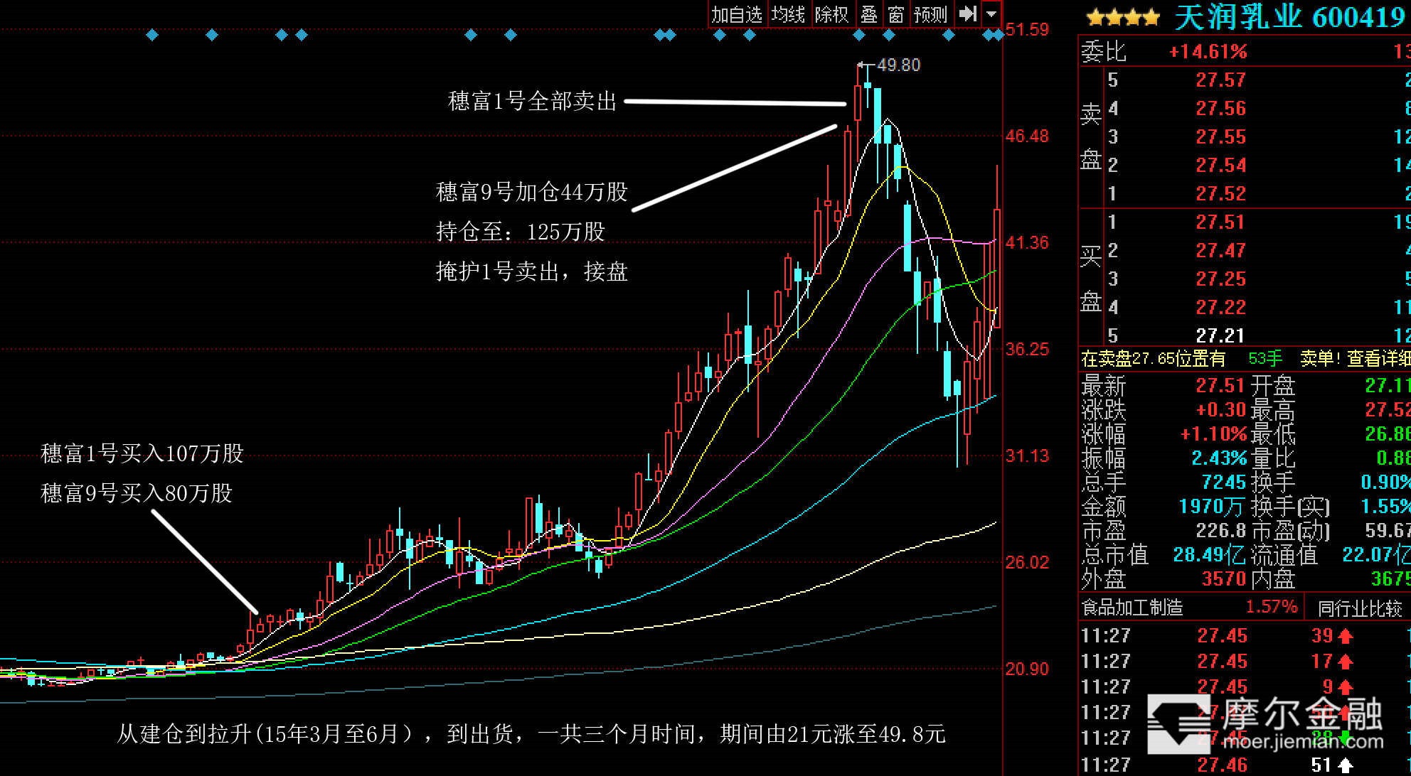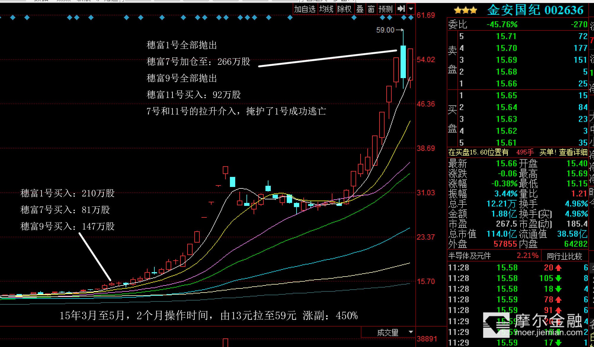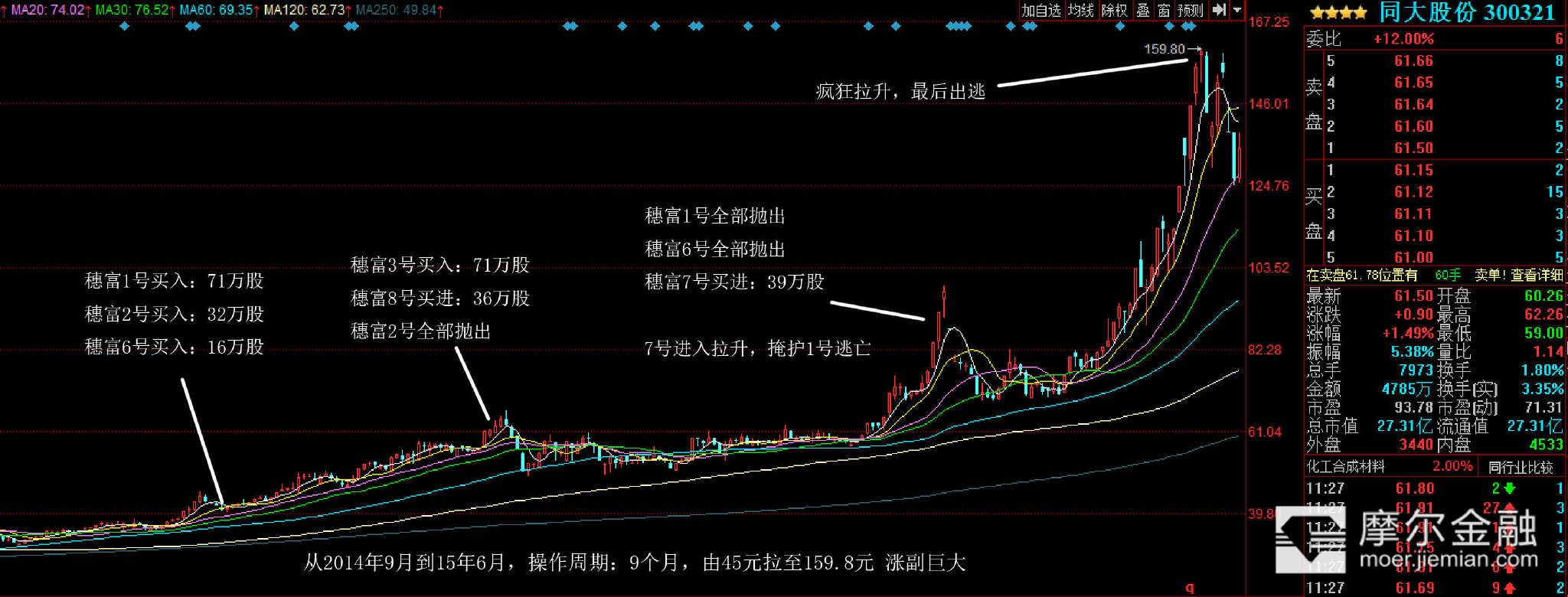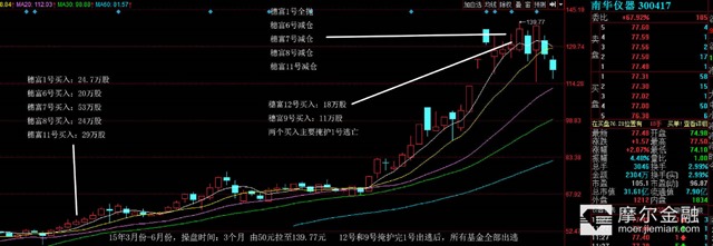其实很容易,关注每个季度,谁是排行榜,前三名,就可以了,我就是在2014年,第一季度,当穗富拿了第一名开始关注它的,我把15年,穗富操盘的个股,重仓的,全部找出来,把操作时间,操作副度,操作习惯整理出来: