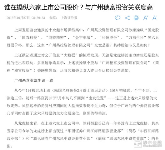 首先,可以找出,上面股票,在拉升期间的龙虎榜数据,然后针对披露的营业部,去查所有的交易记录,和上面这些股票,大部份对的上的就是穗富所在的营业部了,一般会有多个营业部。