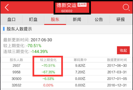 (2)从股东人数变更后发现近三期出现大幅连降,出现主力吸筹锁仓行为。