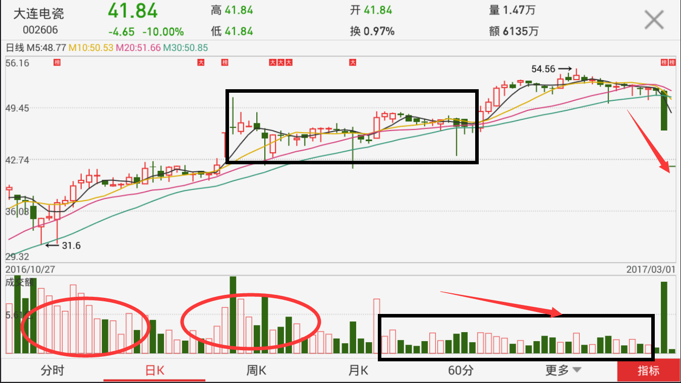 (1)新股上市开板后,股价在2月初开始出现异动托压夹K线。