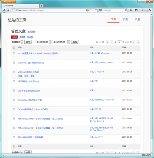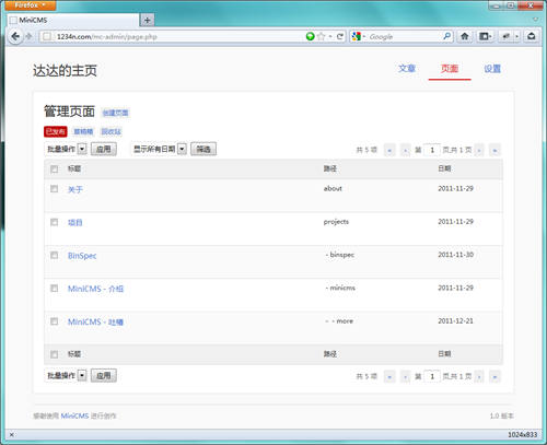 MiniCMS是一个针对个人网站设计的微型内容管理系统。它的特点是:
