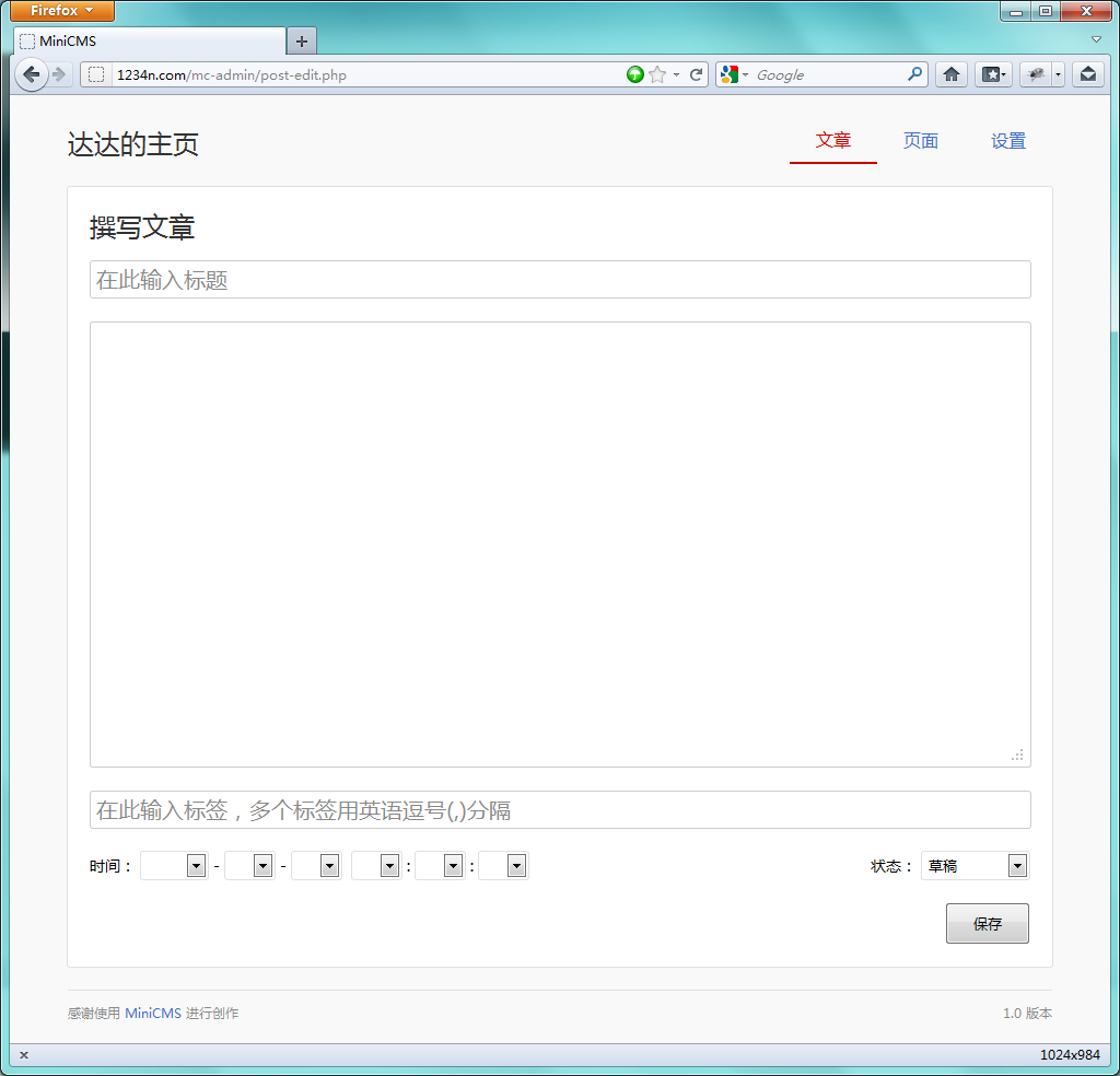 本人不会使用PS,也没有受过美术教育,MiniCMS的界面设计都是手写HTML和CSS完成的,所以最后的结果就是MiniCMS成了一个没有任何图片和图标的超朴素CMS。