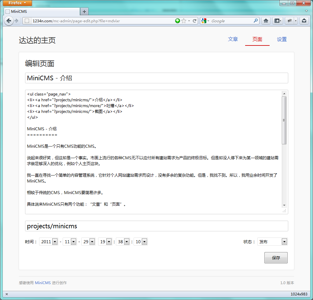 本文为转摘,此源码出自:http://1234n.com/?projects/minicms/